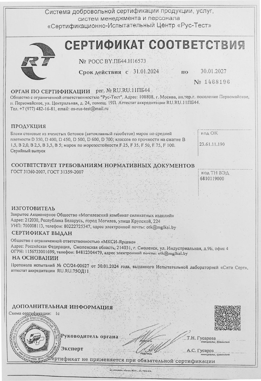 Газобетон Могилевский КСИ